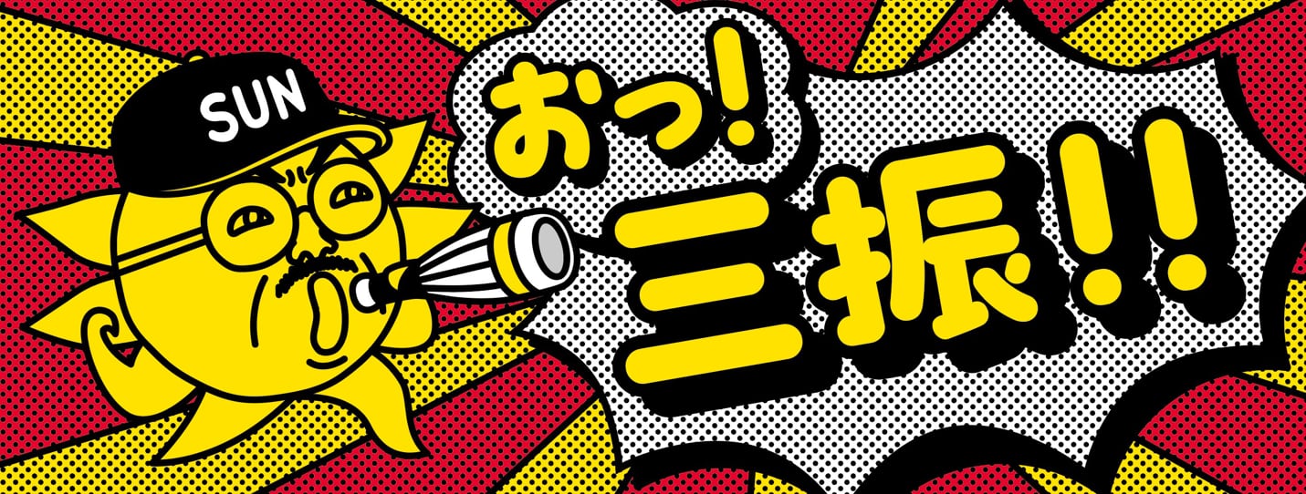 「おっ!サン」の新バージョンタオルがついに登場!打者を三振に抑えたい時、そして三振を奪った時に、球場・テレビの前で掲げよう!