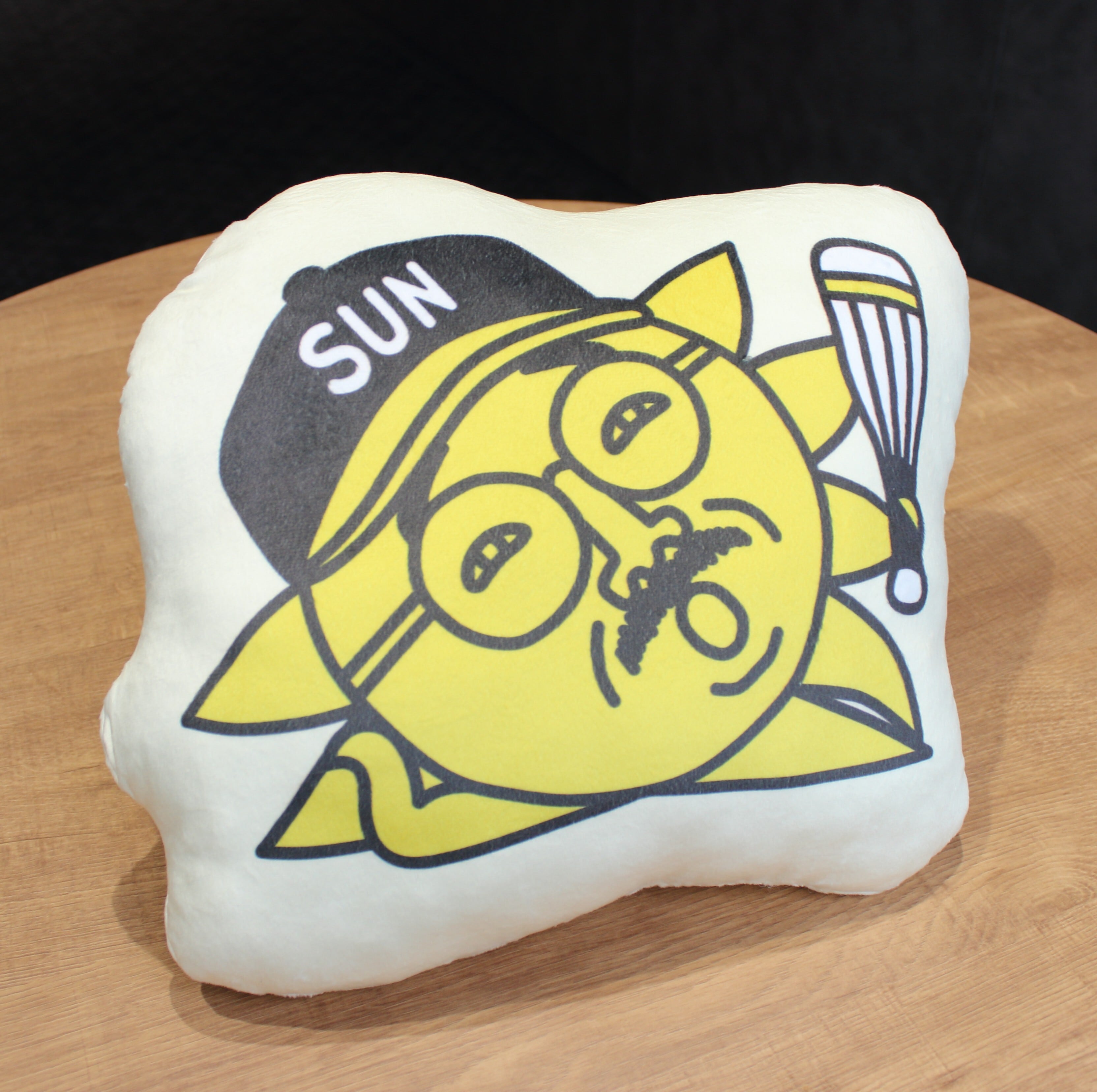 おっ!サンのクッションです。ソファやデスクにいるだけで癒しになりますが、ムチムチでしっかりとした質感なので、椅子と腰の間に挟んだり、枕代わりにしたりと、色々な使い方で楽しむことが出来ます!